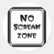 No Scream Zone Classic Round Sticker