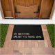 Doormat featuring the text "no soliciting unless you bring wine" in a neutral, light brown font on a black background. Text can be changed. All colors are customizable in the design tool.