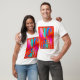 The shirt is good quality and fits just fine, but the colors of the printing are not as bright as in the sample photo. Not the best. The colors are a lot brighter in the sample photo; when I received the shirt they appeared faded. The red looks a little more pink and the blue is a lot lighter. N.B. I did not wash the shirt yet.