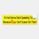 "I'm not gonna get a speeding ticket because can't leave on time!" in black font with drop shadow. The word "You" in a tortured red font with drop shadow. All on a plain background. Choose any background color you like.