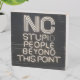 This is a funny sassy neon white and black sign that reads: NO Stupid People Beyond This Point