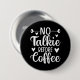 Funny coffee design for the person who loves their coffee in peace, features white text and hearts that reads NO Talkie Before Coffee! Coffee themed bags, mugs, stickers, buttons, magnets and more.