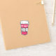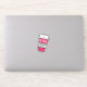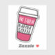 Can't even think about having a conversation before your first cuppa joe? This funny sticker for coffee lovers features the quote "no talkie before coffee" on a pink and white to go coffee cup illustration.