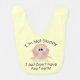 Tired of people laughing at your dribbling? Get your mom to buy you one of these bibs and tell them why: I´m not sloppy - I just don´t have any teeth! Attitude design for self confident babies and toddlers with a funny cartoon baby face in folk art style!