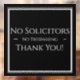 Square black "No Solicitors" sign for company, office, or small business. Let visitors to your business know that you are requesting no solicitors on the premise using this sleek window cling sign.