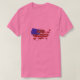 The shirt is good quality and fits just fine, but the colors of the printing are not as bright as in the sample photo. Not the best. The colors are a lot brighter in the sample photo; when I received the shirt they appeared faded. The red looks a little more pink and the blue is a lot lighter. N.B. I did not wash the shirt yet.