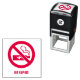Electronic cigarette icon with red prohibited circle. Custom text "No Vaping"