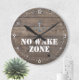 Nautical Boutique Co.'s "No Wake Zone" nautical clock features a watercolor anchor, nautical stencil typography text, and modern block typography numbers set on a dark, rustic wood background. #Nautical #Decor #Boating