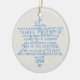 Lightweight, smooth, pure white ornament with nice sheen. Perfect size to be seen from across the room ... and to attract closer inspection! Price was great for ordering enough for the whole family! Clear, bold black design just as requested. Matches the order exactly. Just so nice!