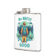 Well made flask, a little better than I had expected. Flask came in clear plastic box which gave it a nice presentation when I took it out of the zazzle packaging. Image is not printed on flask but on sticker. Don't know how this will hold up I haven't used it yet. This would make a Great gift! I plan to purchase more for friends! Cheers. I thought a little brighter than computer. Very crisp, writing wasn't