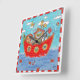 This beautiful print of a pen and watercolour illustration by Helen McCartney Designs features a group of sweet animals huddled together aboard Noah's Ark.