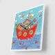 This beautiful print of a pen and watercolour illustration by Helen McCartney Designs features a group of sweet animals huddled together aboard Noah's Ark.