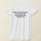 My overall review is that the T-shirt is nice, it fits true to size however the font is significantly smaller than advertised and you can't read it. The printing is unreadable and there is a strain to read it. It does not look like the advertised product. Maybe the shirt color is darker or a larger more visible font should have been used. Photos with and without flash and font is barely legible.