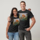 My 11 yo wore adult XL (5’7” 165#). The 8yo is small framed. She wore adult small and tied it in the back. Grandma wore adult large with long sleeve shirt underneath. Tall girl adult medium. Dark haired male adult large. Good quality dark Heather gray, Gildan brand shirt. -it was next up from basic choice and cost about $20 per shirt. Not too thick or thin. Washed and dried well, no major shrinkage. Not see-through. Can wear a bra under it fine. Screen print is just as shown and well done, front and back.