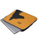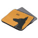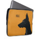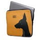A minimalist laptop sleeve design for dog owners or lovers which has been put on yellow background. The design introduces a silhouette of a black Doberman accompanied with the default customizable thanks.