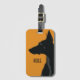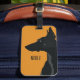 A minimalist luggage tag design for dog owners or lovers which has been put on yellow background. The design introduces a silhouette of a black Doberman accompanied with the default customizable thanks.