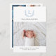 This stylish and elegant 2-sided photo birth announcement card features four (4) photos (front & back) of your newborn baby boy, custom text that can be personalized, baby blue foliage wreath, and monogram. Customize this template product by adding your newborn baby's name, birth record, and the parents' names.