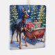 This striking Christmas painting features a confident Doberman protecting a sleigh of gifts. Strong winter visuals make this perfect for modern holiday décor and dog-enthusiast collections.