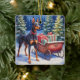 Noble Doberman Guarding Christmas Sleigh Winter Ceramic Ornament