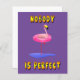 Bring humor and charm to your space with this quirky "Nobody is Perfect" design featuring a relaxed flamingo floating in a pink swimming ring. Set against a bold purple background with playful 3D-style yellow lettering, this fun and eye-catching design is perfect for flamingo lovers, summer vibes, and anyone who embraces imperfection with a smile. Ideal for gifts, home decor, and accessories!