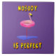 Bring humor and charm to your space with this quirky "Nobody is Perfect" design featuring a relaxed flamingo floating in a pink swimming ring. Set against a bold purple background with playful 3D-style yellow lettering, this fun and eye-catching design is perfect for flamingo lovers, summer vibes, and anyone who embraces imperfection with a smile. Ideal for gifts, home decor, and accessories!