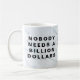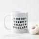 Start your morning with a hot cup of economic truth using this "Nobody Needs A Billion Dollars" coffee mug. It is a bold way to make a statement in the office breakroom without saying a single word. This design features clear text that challenges the status quo of extreme wealth inequality. It is perfect for activists, socialists, or anyone who thinks the current system is broken. Use it to spark a debate over caffeine or just to signal your political values. It makes a thoughtful gift for the progressive friend who loves discussing policy over breakfast. [gem 251128]