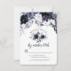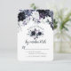 Nocturnal Floral Watercolor Lush Flower Design with Hand Painted Stems, Vines, Leaves, Foliage. Colorful Navy blue, Dusty blue, Dark almost Black Gray, and hints of Mauve pink. With Hand Drawn Line elements, Swirly Chic Hand Lettered Brush Script Fonts, Top Border Drop, and Elegant floral Bouquet- Wedding RSVP Cards!
