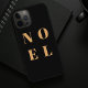 Simple, stylish & bold "Noel" quote art holiday iphone case in elegant gold on a luxe black background in modern minimalist typographic style. The greeting can be easily personalised for a unique and personal holiday design which stands out from the crowd!
