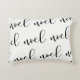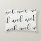 This stylish holiday pillow features the word "noel" repeated in modern black calligraphy on a white background.