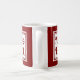 Coffee mug with a red and white Christmas fun NOEL text print and striped Christmas baubles.