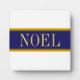 NOEL Fun Festive Navy Blue White Holiday Stripes Plaque