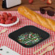 The word NOEL and your name among winter leaves and red, white and gold berries on a black background (or any color), these square paper plates are elegant for any holiday Christmas occasion. MATCHING items in our store.