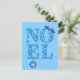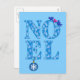 NOEL in a Blue Christmas Tree Pattern Holiday Postcard