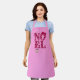 Apron in the greeting "Noel" patterned with retro modern Christmas trees in shades of burgundy and pink, embellished with a ribbon bow and a Christmas ornament