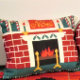 Noel Mantle Brick Fireplace Designer Crochet Print Accent Pillow