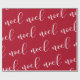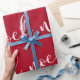 This stylish holiday wrapping paper features the word "noel" repeated in modern white calligraphy on a red background.