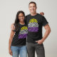 My 11 yo wore adult XL (5’7” 165#). The 8yo is small framed. She wore adult small and tied it in the back. Grandma wore adult large with long sleeve shirt underneath. Tall girl adult medium. Dark haired male adult large. Good quality dark Heather gray, Gildan brand shirt. -it was next up from basic choice and cost about $20 per shirt. Not too thick or thin. Washed and dried well, no major shrinkage. Not see-through. Can wear a bra under it fine. Screen print is just as shown and well done, front and back.