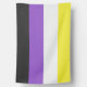 Outdoor house flag with the non-binary pride flag. Yellow, white, purple, and black flag of the non-binary pride movement