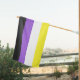 Outdoor house flag with the non-binary pride flag. Yellow, white, purple, and black flag of the non-binary pride movement