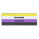 Name tag with the non-binary pride flag. A yellow, white, purple, and black flag of the non-binary pride movement, with customizable text template for your name and custom text