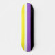 Non-binary people may identify as having two or more genders; having no gender; moving between genders or having a fluctuating gender identity; or being third gender or other-gendered, a category that includes those who do not place a name to their gender. Each stripe color represents different types of non-binary identities: Yellow for people who identify outside of the gender binary, white for nonbinary people with multiple genders, purple for those with a mixture of both male and female genders, and black for agender individuals.