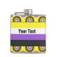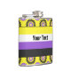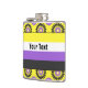 Vinyl-wrapped flask with the non-binary pride flag and a seamless modern geometric flower pattern in the colors of the pride flag; a yellow, white, purple, and black enby pride design on a yellow background with an editable text template for your name or message