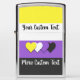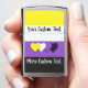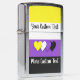 Zippo lighter with the non-binary pride flag with little hearts in the center of the design. Yellow, white, purple, and black flag of the enby pride movement; with an editable text field for your name or message