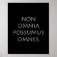 Non Omnia Possumus Omnes. We cant all of us do everything. A latin quote of wisdom and philosophy that is still valid and true today.