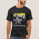 This non-binary pride gym t-shirt is for enby people who exist outside the labels and lift outside the expectations. A cartoon figure raising a fist while gripping a dumbbell sits against a bold non-binary pride brushstroke in yellow, white, purple and black — raw enby strength and pride in one image that refuses to be ignored or minimised.