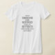 My overall review is that the T-shirt is nice, it fits true to size however the font is significantly smaller than advertised and you can't read it. The printing is unreadable and there is a strain to read it. It does not look like the advertised product. Maybe the shirt color is darker or a larger more visible font should have been used. Photos with and without flash and font is barely legible.