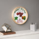 This wall clock a great gift idea for birthdays, Mother's Day, Christmas, or any occasion! It can include any names, text, or photos you like. The sample has a name, date, and message, along with "Italian" food art. The clock is fully customizable, including hands and trim colors. You can personalize it on your own, or contact MineByDesign and let us help you design something you love!