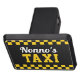 Does grandpa pick up his grandkids at school or drive them to and from activities? Make his taxi status official with this funny trailer hitch cover featuring "Nonno's Taxi" in yellow and white lettering with checkered cab trim. Customize with his preferred grandfather nickname if desired.