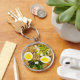 Ramen noodles soup with boiled egg, cilantro and green onions food photo key chain.