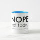 A plain white mug, black inside, with classy typography. It has black text stating "NOPE not today and tomorrow's not looking good".